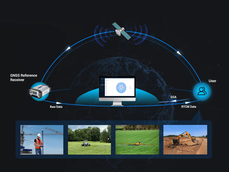 Leistungsstarkes GNSS-CORS-System, das schnelle, stabile und genaue RTK-Korrekturen für Landwirtschaft, Vermessung und Robotik liefert.