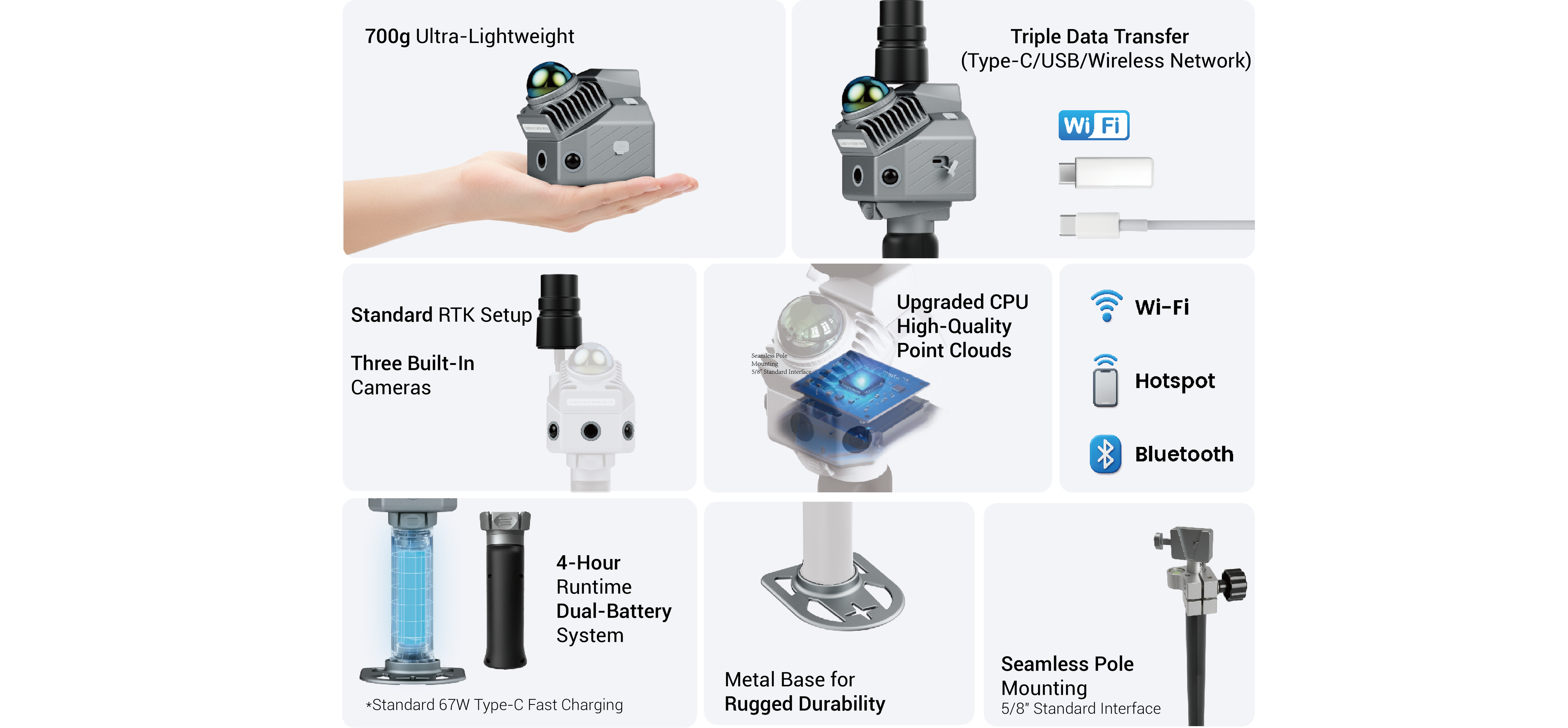 Der FJD Trion P2 LiDAR-Scanner der nächsten Generation vereint bahnbrechende Mobilität mit industrieller Genauigkeit. Entwickelt für den reibungslosen Außeneinsatz, liefert er zentimetergenaue Präzision, kolorierte Punktwolken in Echtzeit und Ergebnisse in mehreren Formaten – alles in einem kompakten, 700 g leichten Gehäuse. Ob bei der Kartierung komplexer Landschaften oder der Erfassung komplizierter Details – der Trion P2 ermöglicht Profis, Vermessern und 3D-Scan-Enthusiasten, mit weniger Aufwand mehr zu erreichen.